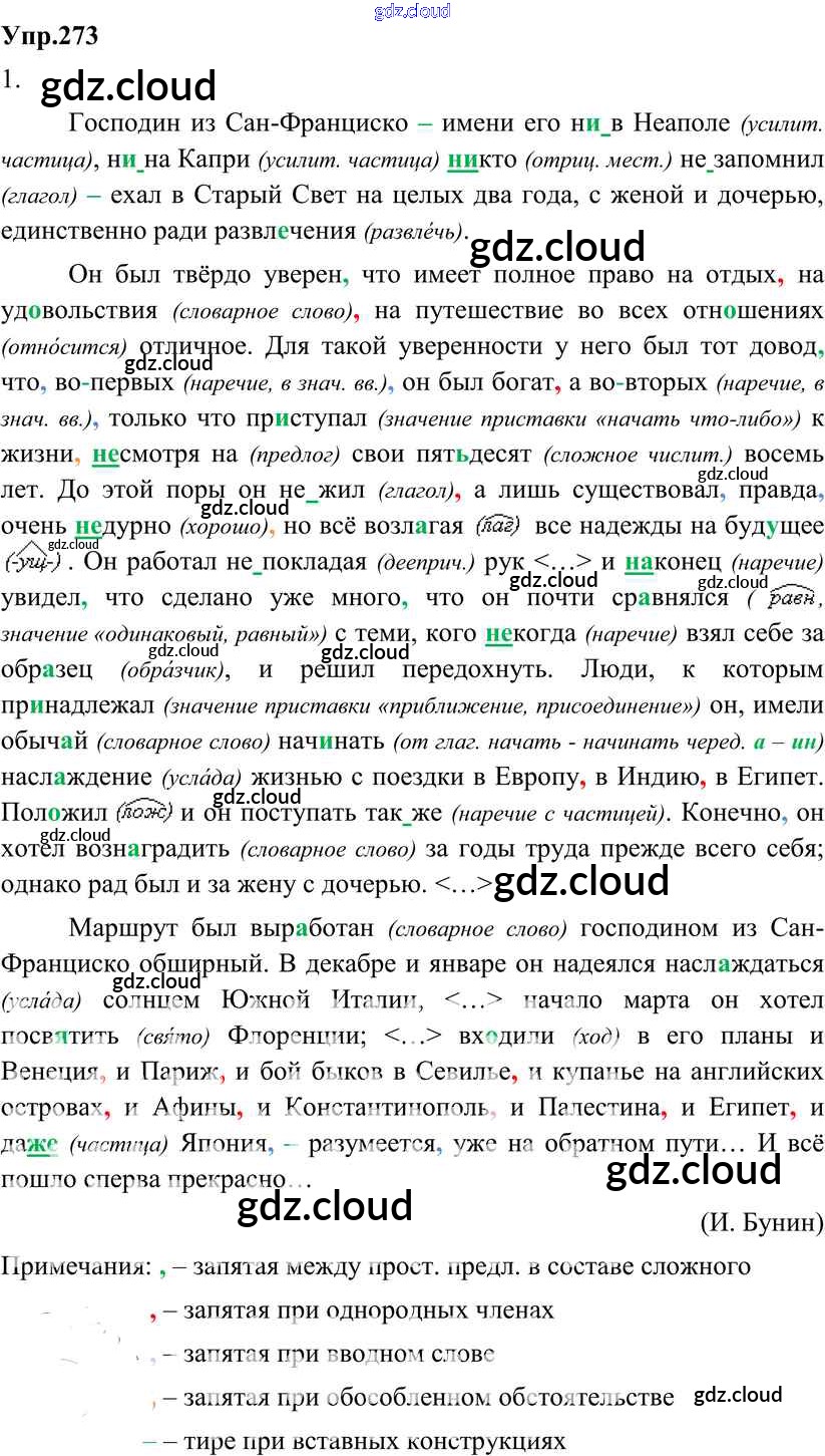 Ответ на задание 273 Учебник Русский язык за 8 (восьмой) класс Разумовская, Львова, Капинос, Львов Вертикаль 2013