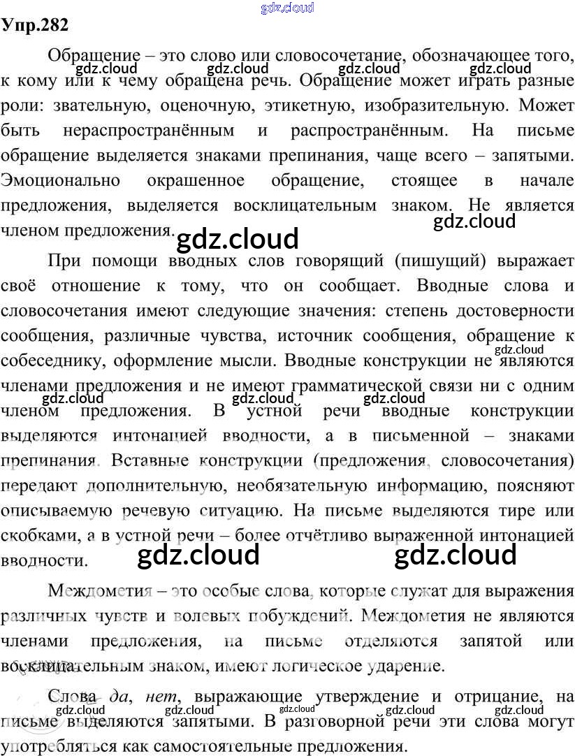 Ответ на задание 282 Учебник Русский язык за 8 (восьмой) класс Разумовская, Львова, Капинос, Львов Вертикаль 2013