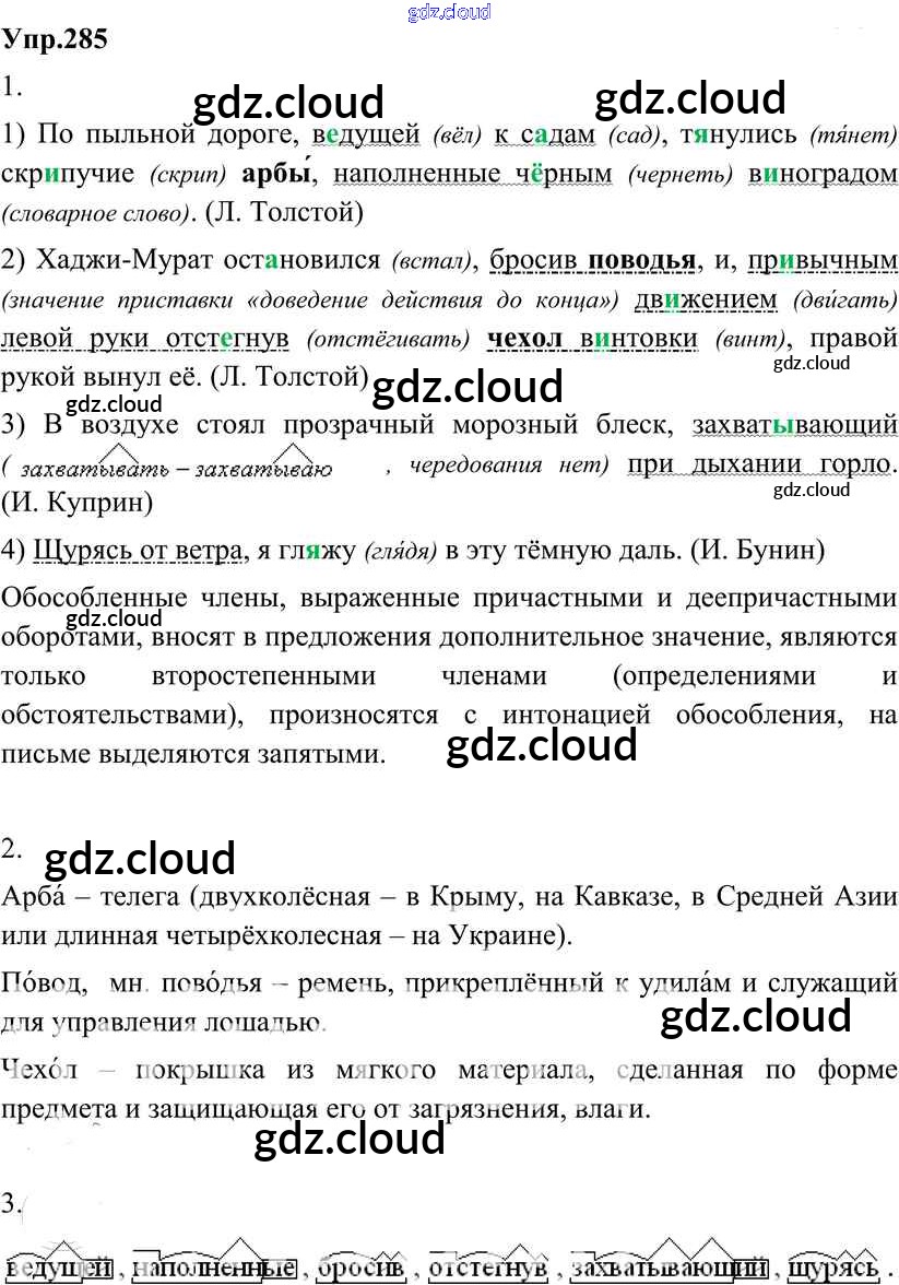 Ответ на задание 285 Учебник Русский язык за 8 (восьмой) класс Разумовская, Львова, Капинос, Львов Вертикаль 2013