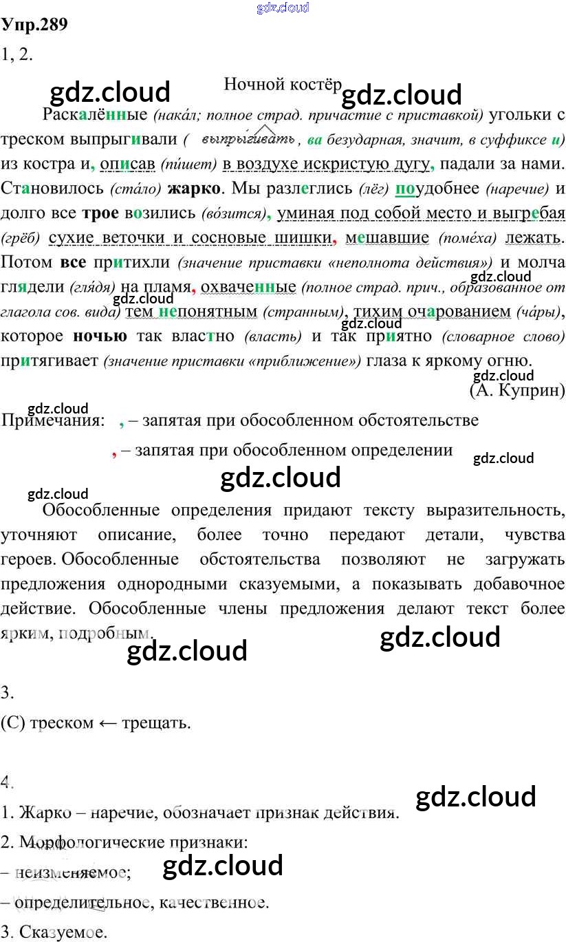 Ответ на задание 289 Учебник Русский язык за 8 (восьмой) класс Разумовская, Львова, Капинос, Львов Вертикаль 2013