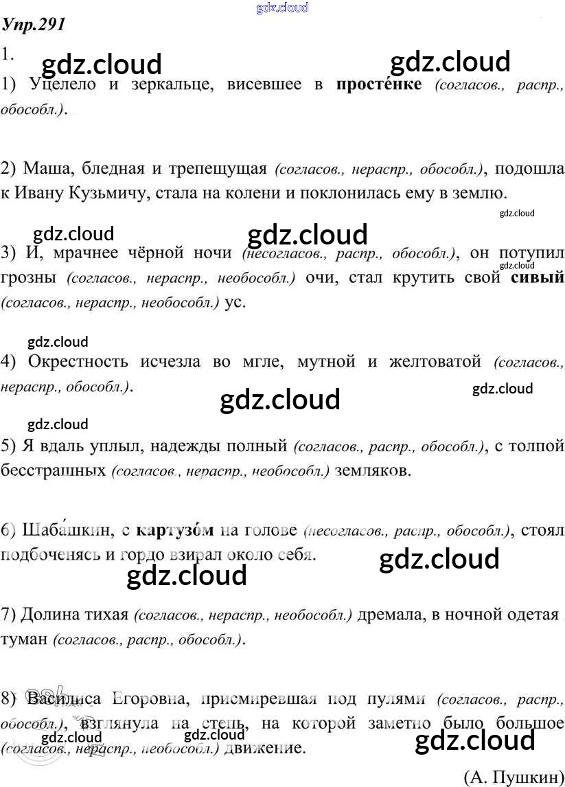 Ответ на задание 291 Учебник Русский язык за 8 (восьмой) класс Разумовская, Львова, Капинос, Львов Вертикаль 2013