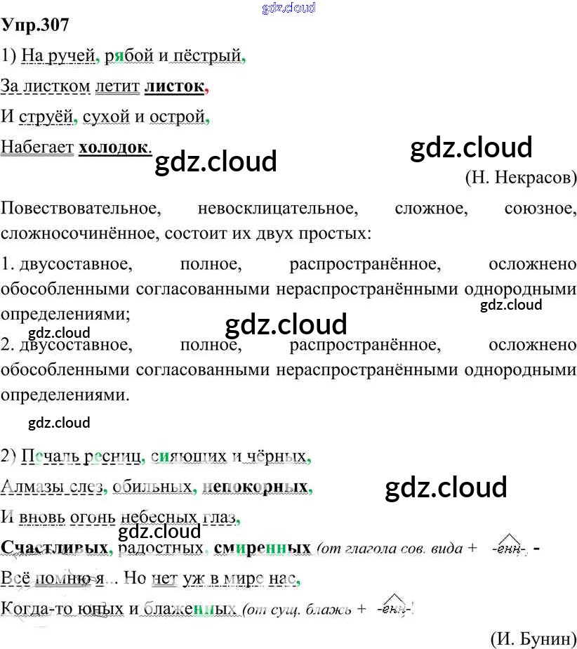 Ответ на задание 307 Учебник Русский язык за 8 (восьмой) класс Разумовская, Львова, Капинос, Львов Вертикаль 2013