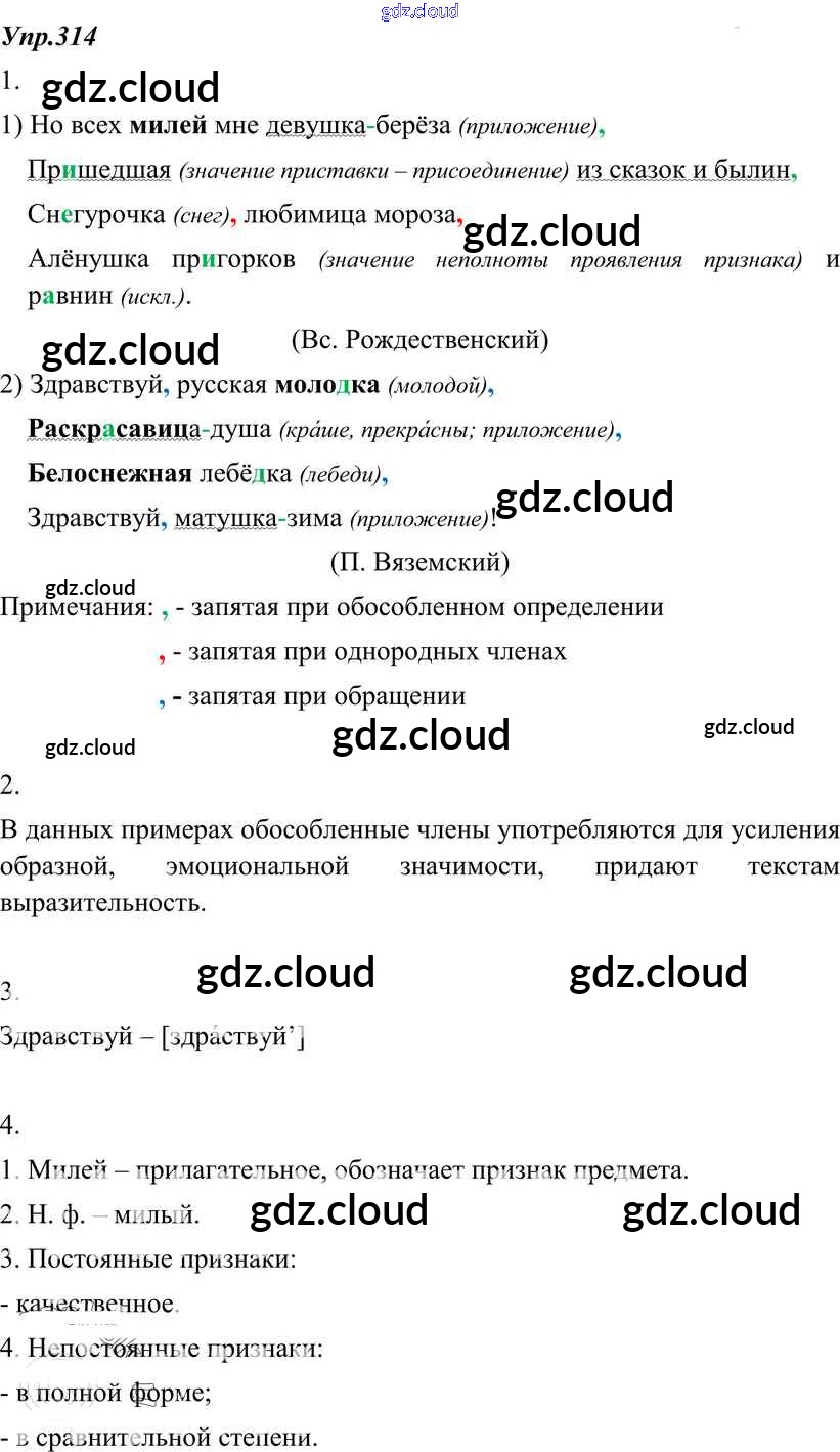 Ответ на задание 314 Учебник Русский язык за 8 (восьмой) класс Разумовская, Львова, Капинос, Львов Вертикаль 2013