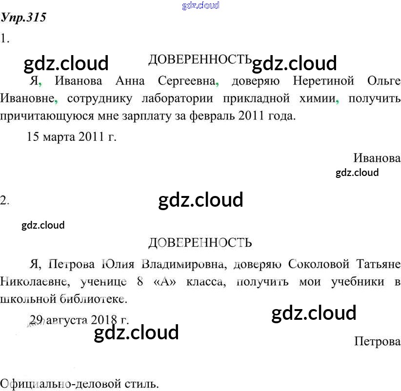 Ответ на задание 315 Учебник Русский язык за 8 (восьмой) класс Разумовская, Львова, Капинос, Львов Вертикаль 2013