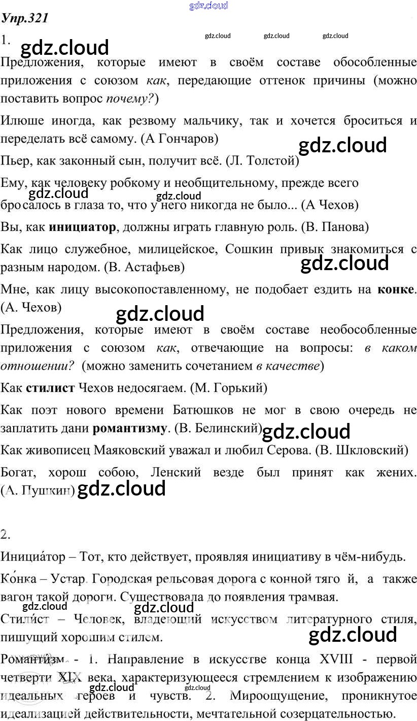 Ответ на задание 321 Учебник Русский язык за 8 (восьмой) класс Разумовская, Львова, Капинос, Львов Вертикаль 2013