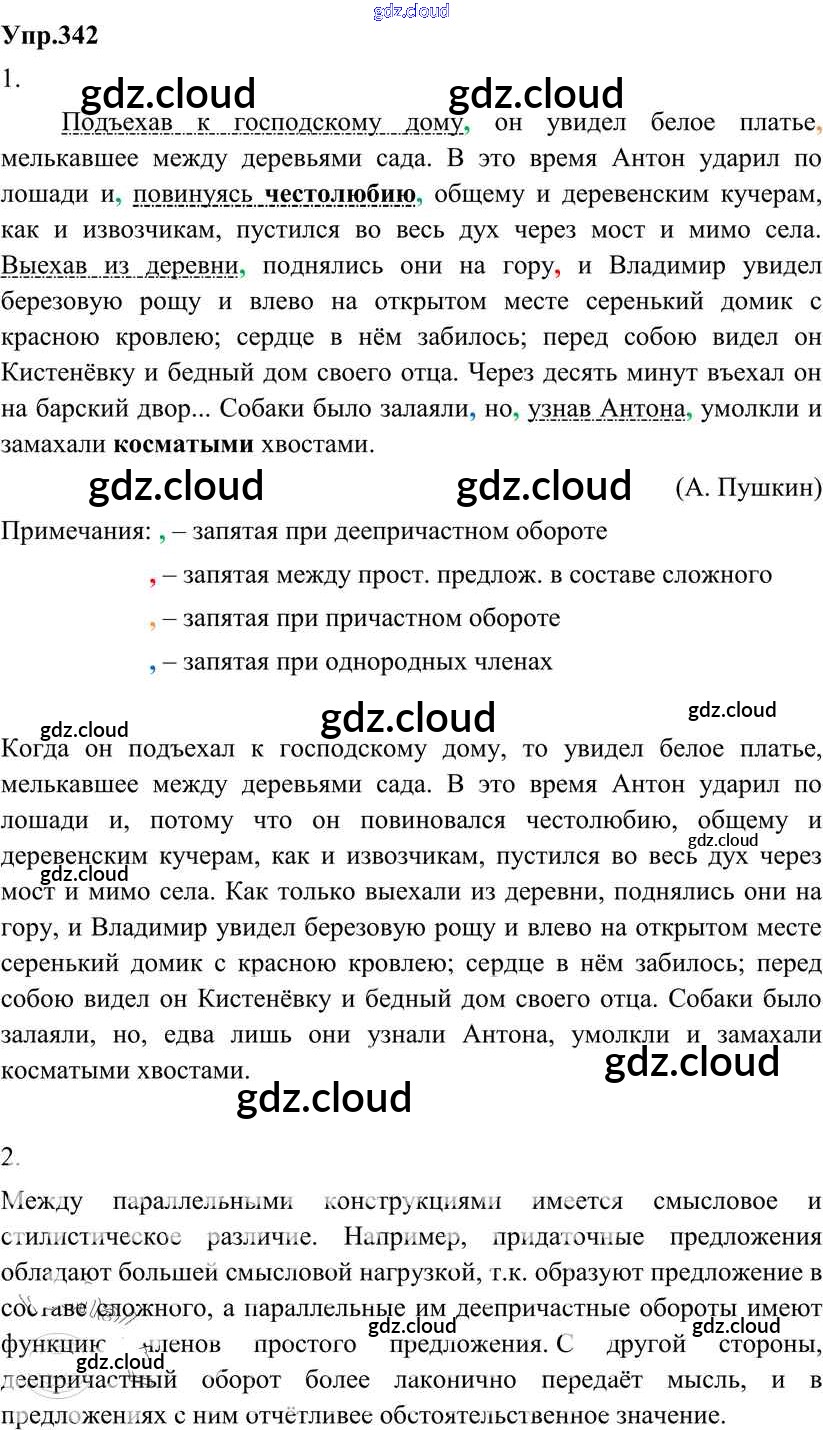 Ответ на задание 342 Учебник Русский язык за 8 (восьмой) класс Разумовская, Львова, Капинос, Львов Вертикаль 2013
