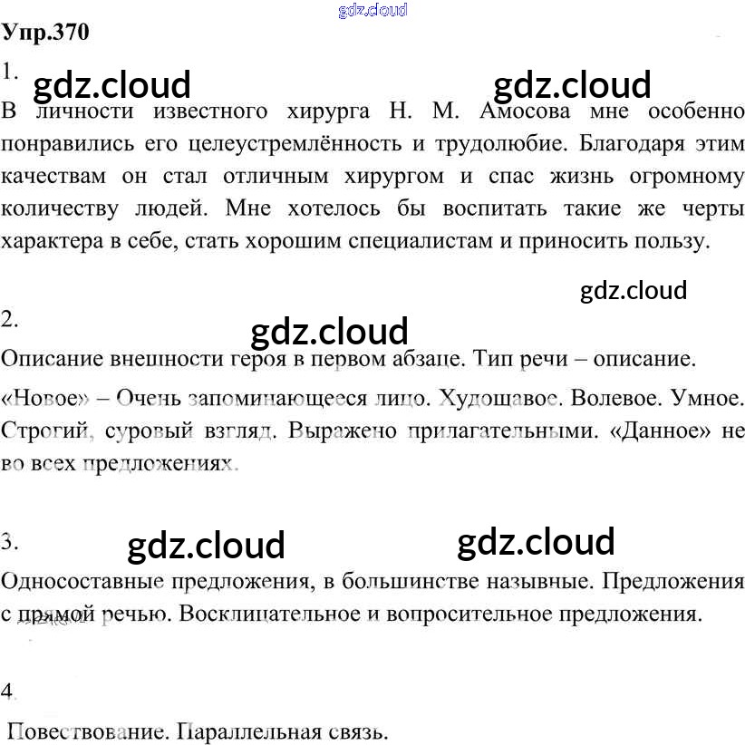 Ответ на задание 370 Учебник Русский язык за 8 (восьмой) класс Разумовская, Львова, Капинос, Львов Вертикаль 2013