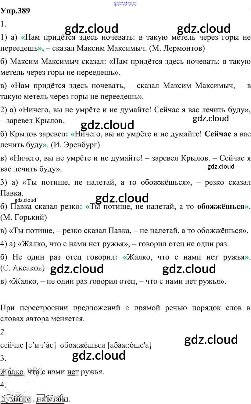 Ответ на задание 389 Учебник Русский язык за 8 (восьмой) класс Разумовская, Львова, Капинос, Львов Вертикаль 2013