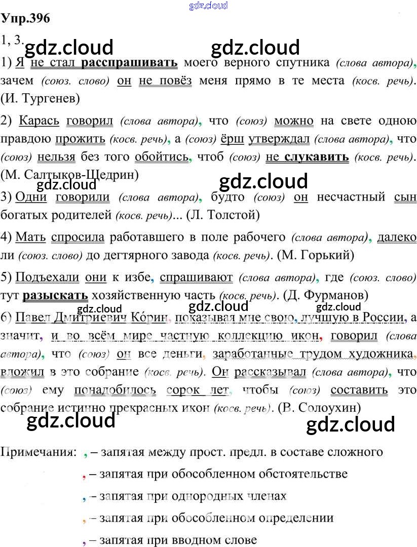 Ответ на задание 396 Учебник Русский язык за 8 (восьмой) класс Разумовская, Львова, Капинос, Львов Вертикаль 2013