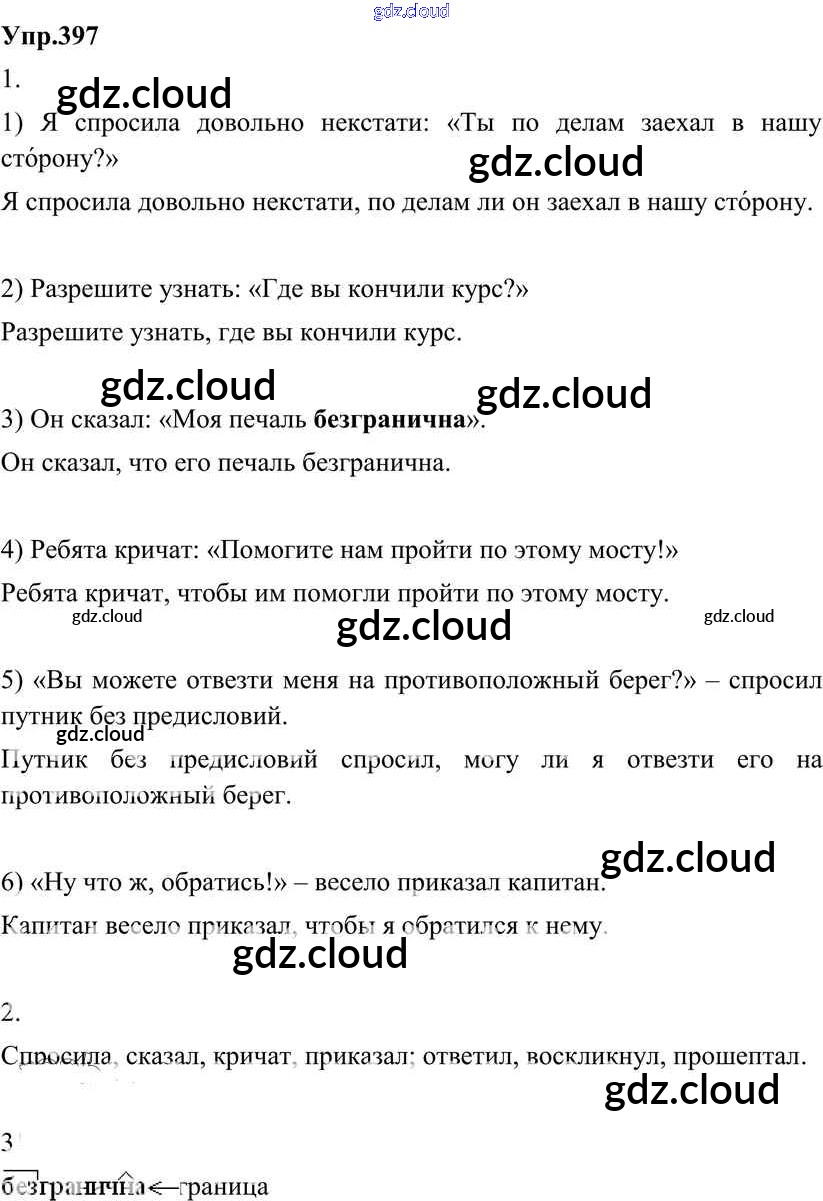 Ответ на задание 397 Учебник Русский язык за 8 (восьмой) класс Разумовская, Львова, Капинос, Львов Вертикаль 2013