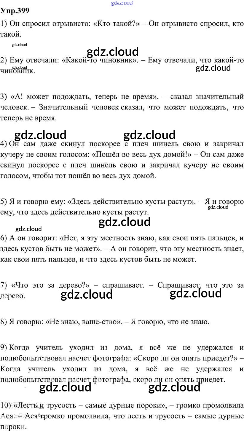 Ответ на задание 399 Учебник Русский язык за 8 (восьмой) класс Разумовская, Львова, Капинос, Львов Вертикаль 2013