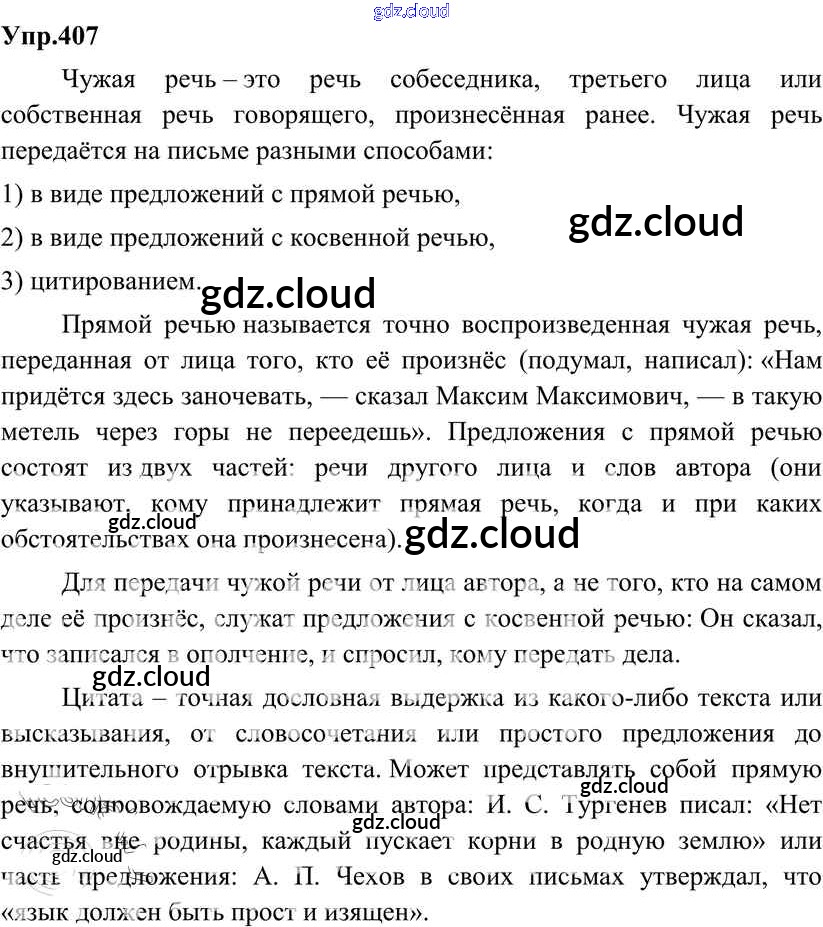 Ответ на задание 407 Учебник Русский язык за 8 (восьмой) класс Разумовская, Львова, Капинос, Львов Вертикаль 2013