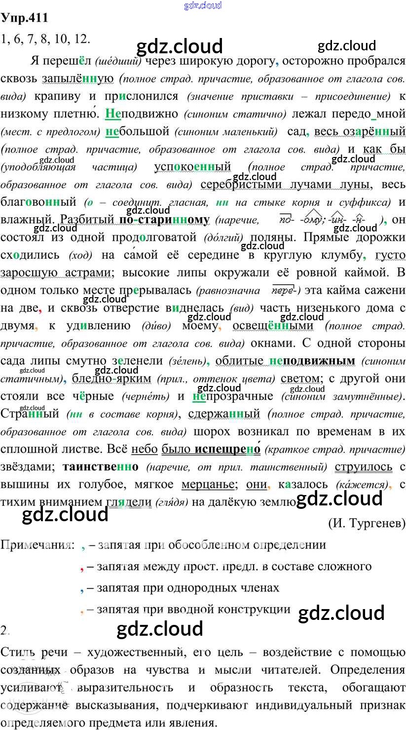 Ответ на задание 411 Учебник Русский язык за 8 (восьмой) класс Разумовская, Львова, Капинос, Львов Вертикаль 2013