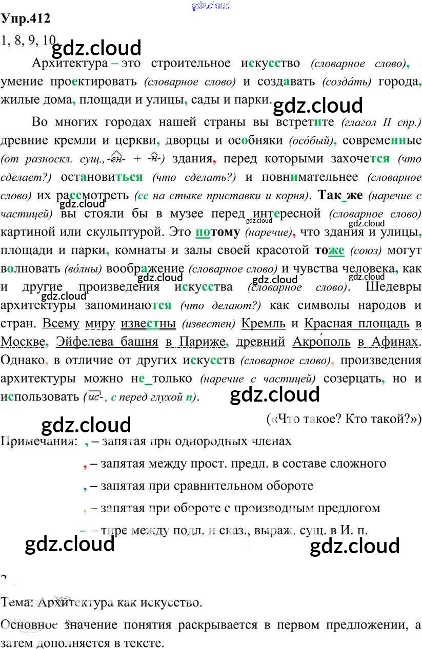 Ответ на задание 412 Учебник Русский язык за 8 (восьмой) класс Разумовская, Львова, Капинос, Львов Вертикаль 2013