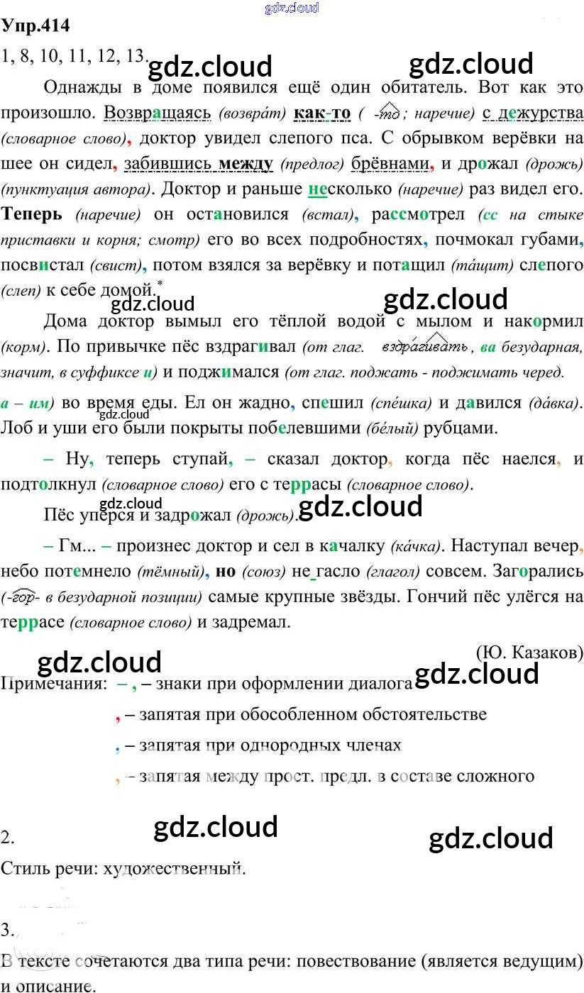 Ответ на задание 414 Учебник Русский язык за 8 (восьмой) класс Разумовская, Львова, Капинос, Львов Вертикаль 2013