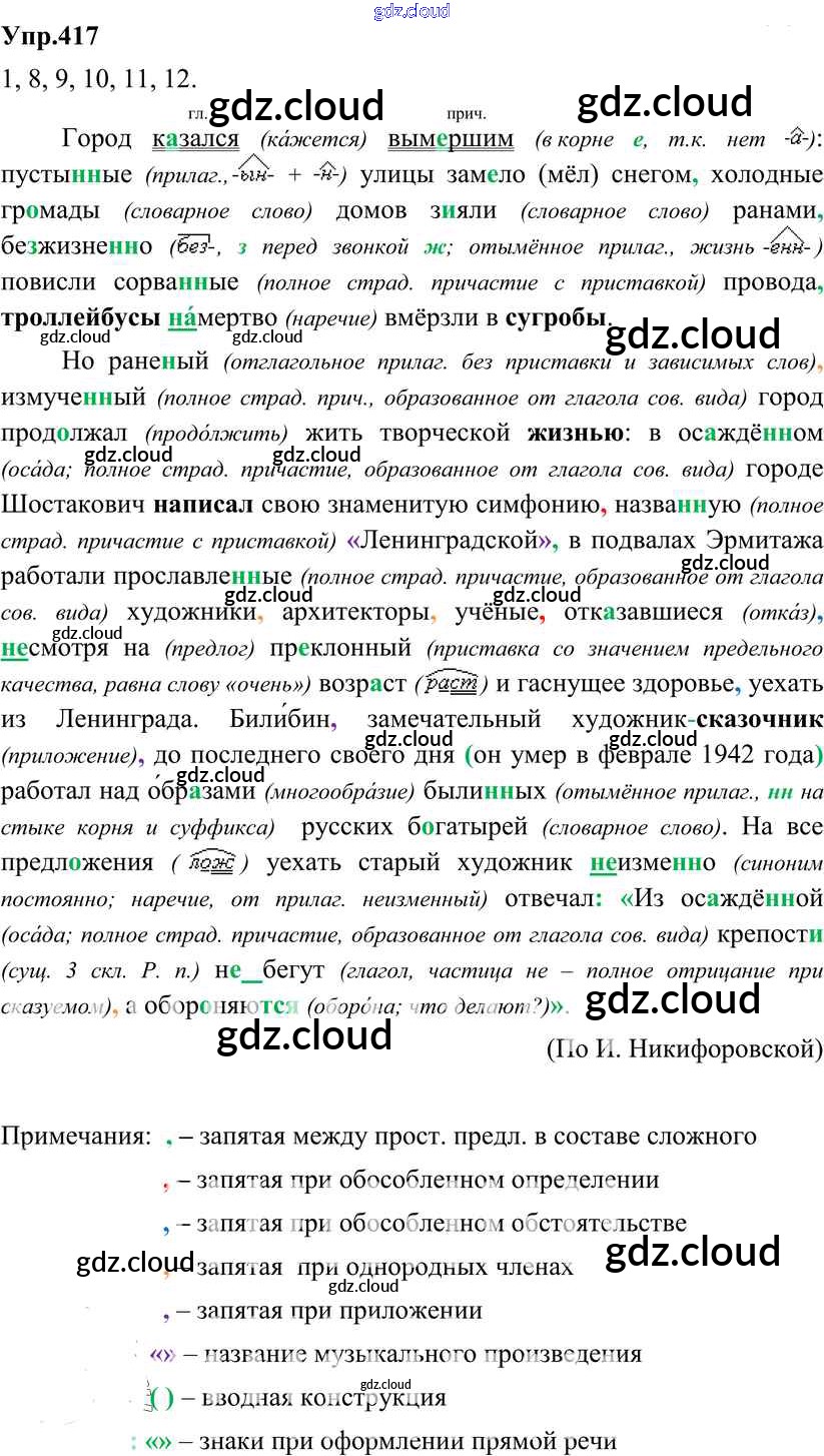 Ответ на задание 417 Учебник Русский язык за 8 (восьмой) класс Разумовская, Львова, Капинос, Львов Вертикаль 2013