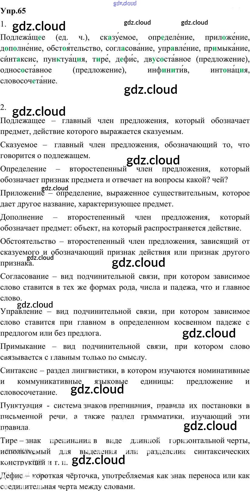 Ответ на задание 65 Учебник Русский язык за 8 (восьмой) класс Разумовская, Львова, Капинос, Львов Вертикаль 2013