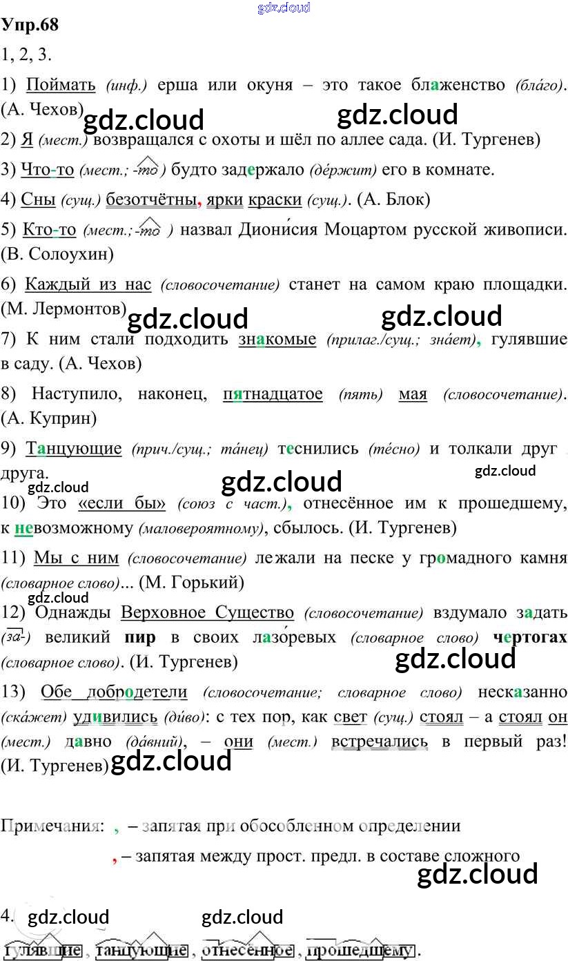 Ответ на задание 68 Учебник Русский язык за 8 (восьмой) класс Разумовская, Львова, Капинос, Львов Вертикаль 2013