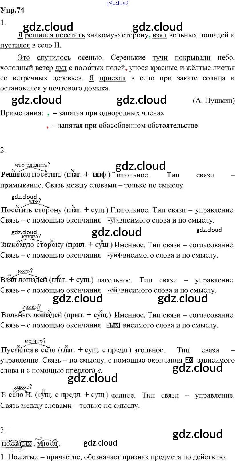 Ответ на задание 74 Учебник Русский язык за 8 (восьмой) класс Разумовская, Львова, Капинос, Львов Вертикаль 2013
