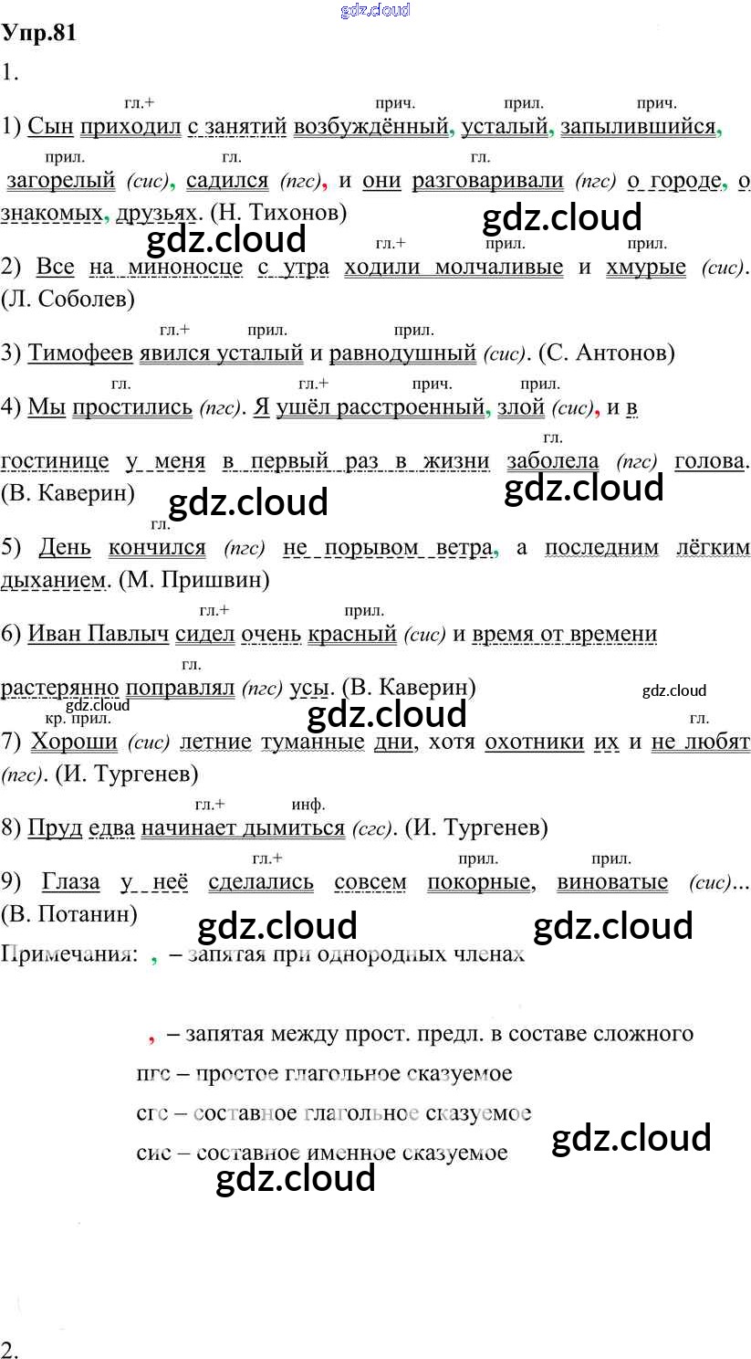Ответ на задание 81 Учебник Русский язык за 8 (восьмой) класс Разумовская, Львова, Капинос, Львов Вертикаль 2013