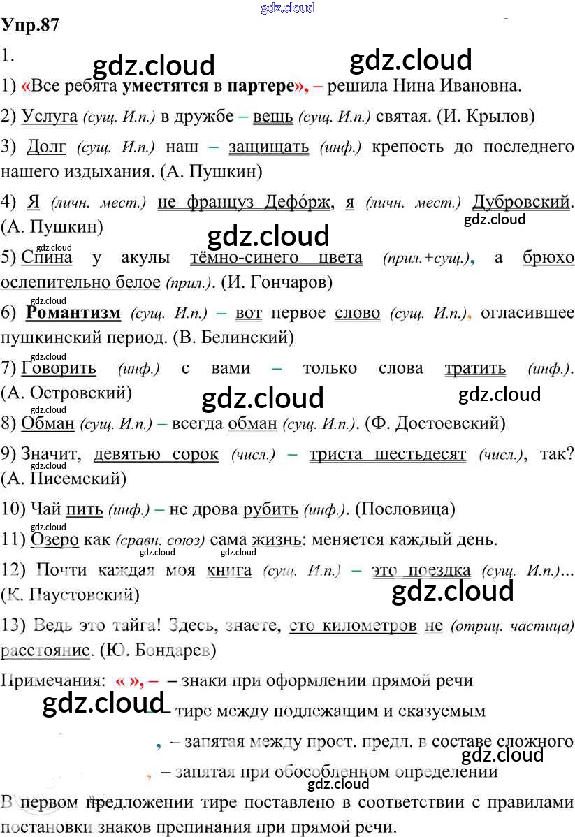 Ответ на задание 87 Учебник Русский язык за 8 (восьмой) класс Разумовская, Львова, Капинос, Львов Вертикаль 2013