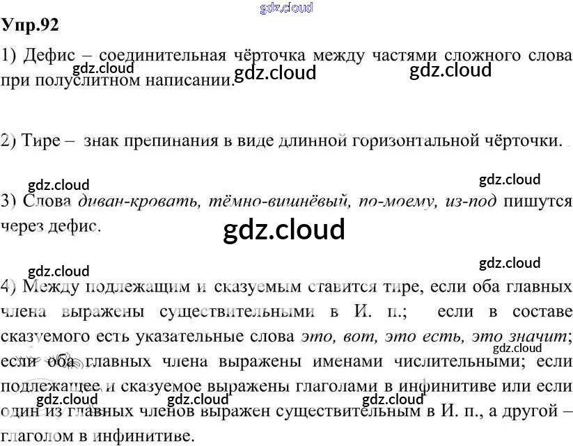 Ответ на задание 92 Учебник Русский язык за 8 (восьмой) класс Разумовская, Львова, Капинос, Львов Вертикаль 2013