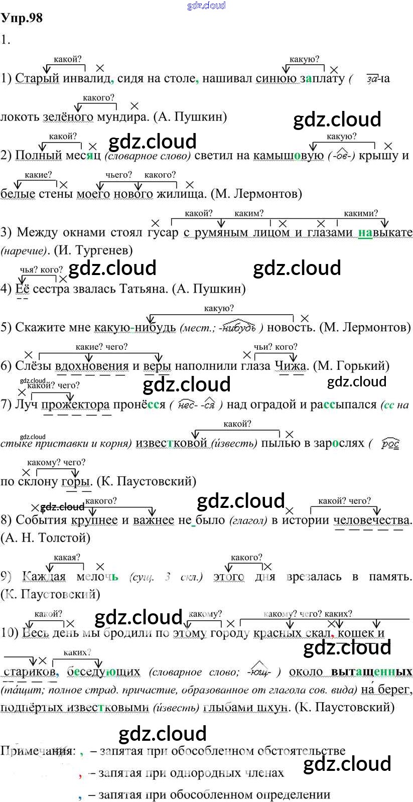 Ответ на задание 98 Учебник Русский язык за 8 (восьмой) класс Разумовская, Львова, Капинос, Львов Вертикаль 2013