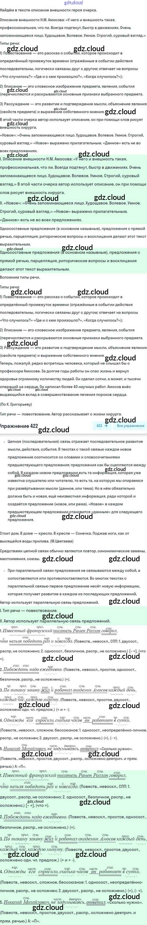 Ответ на задание 422 Учебник Русский язык за 8 (восьмой) класс Разумовская, Львова, Капинос, Львов Вертикаль 2015, 2022