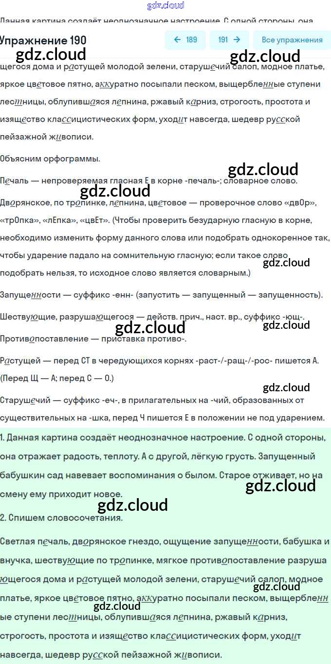 Ответ на задание 190 Учебник Русский язык за 8 (восьмой) класс Рыбченкова, Александрова, Загоровская, Нарушевич 2015, 2022