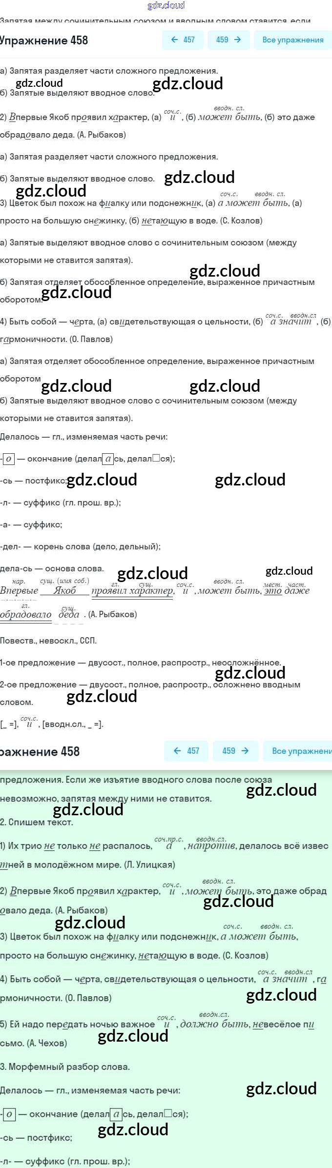 Ответ на задание 458 Учебник Русский язык за 8 (восьмой) класс Рыбченкова, Александрова, Загоровская, Нарушевич 2015, 2022