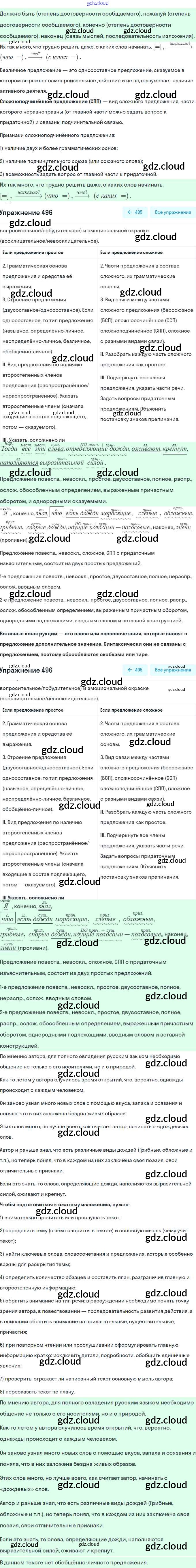 Ответ на задание 496 Учебник Русский язык за 8 (восьмой) класс Рыбченкова, Александрова, Загоровская, Нарушевич 2015, 2022