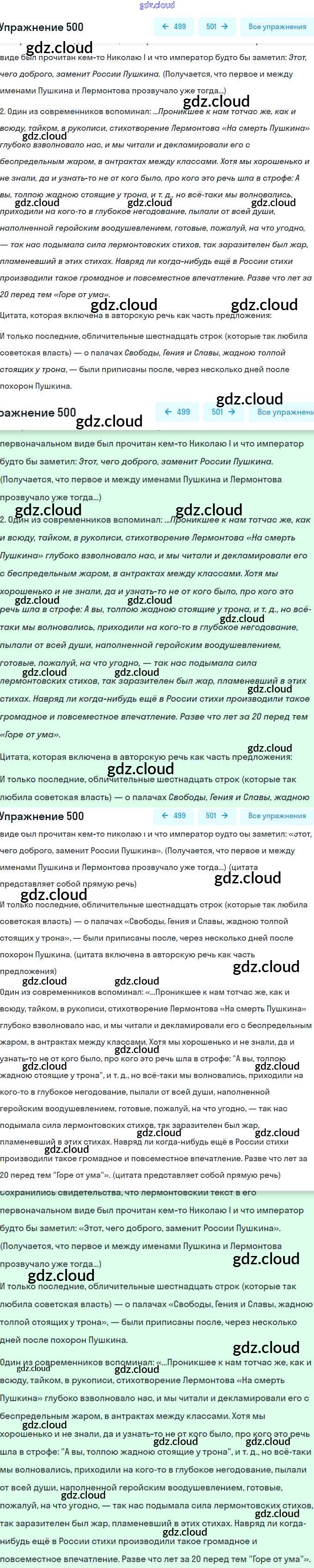 Ответ на задание 500 Учебник Русский язык за 8 (восьмой) класс Рыбченкова, Александрова, Загоровская, Нарушевич 2015, 2022
