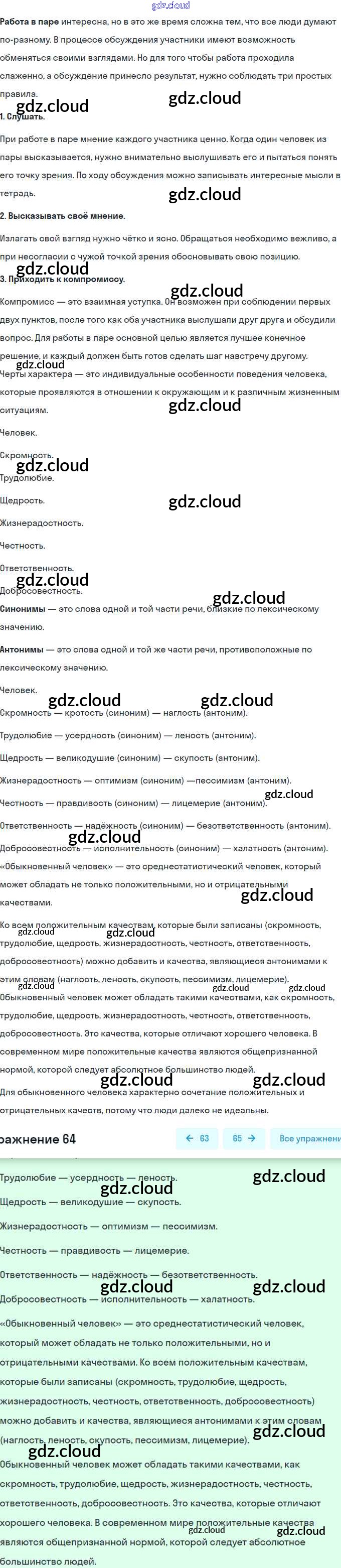 Ответ на задание 64 Учебник Русский язык за 8 (восьмой) класс Рыбченкова, Александрова, Загоровская, Нарушевич 2015, 2022