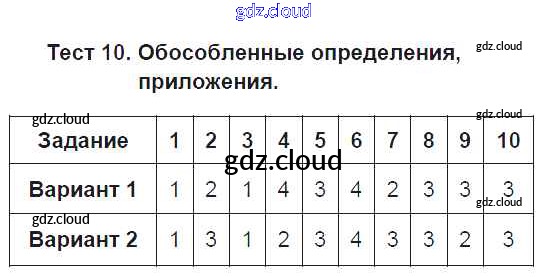Ответ на задание Тест №10. Обособленные определения, приложения Тесты Русский язык за 8 (восьмой) класс Селезнева УМК 2014