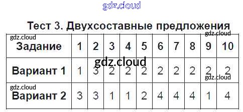 Ответ на задание Тест №3. Двухсоставные предложения Тесты Русский язык за 8 (восьмой) класс Селезнева УМК 2014