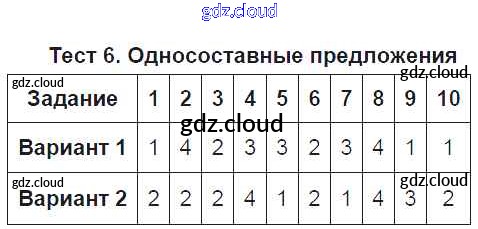 Ответ на задание Тест №6. Односоставные предложения Тесты Русский язык за 8 (восьмой) класс Селезнева УМК 2014