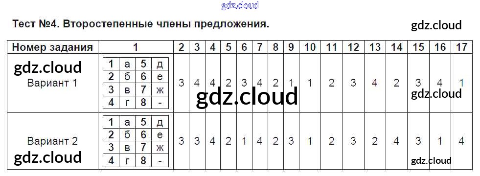 Ответ на задание Тест №4. Второстепенные члены предложения Тематические тесты Русский язык за 8 (восьмой) класс Клевцова, Шубукина УМК 2018