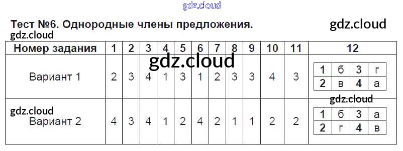 Ответ на задание Тест №6. Однородные члены предложения Тематические тесты Русский язык за 8 (восьмой) класс Клевцова, Шубукина УМК 2018