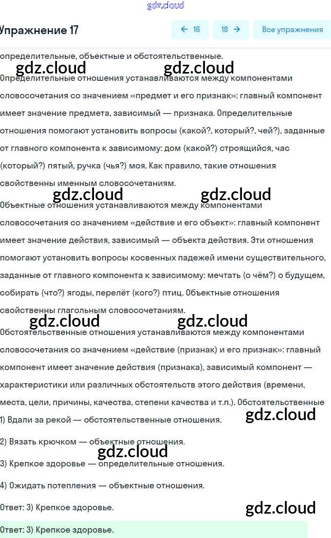 Ответ на задание 17 Тесты, творческие работы, проекты Русский язык за 8 (восьмой) класс Нарушевич, Голубева 2020