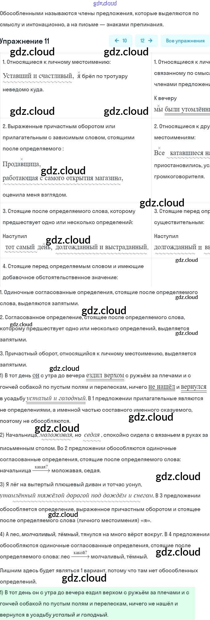 Ответ на задание 11 Тесты, творческие работы, проекты Русский язык за 8 (восьмой) класс Нарушевич, Голубева 2020