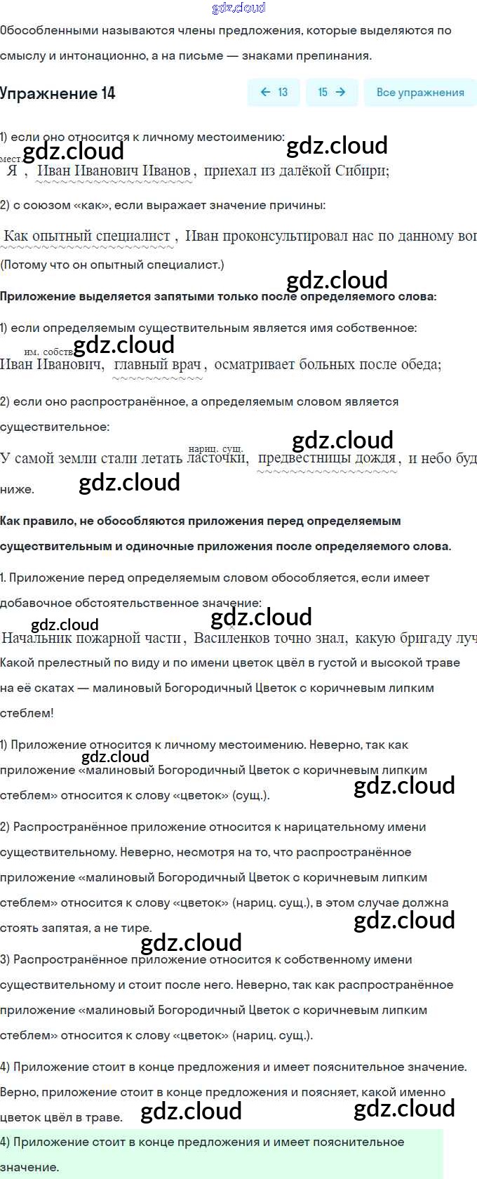 Ответ на задание 14 Тесты, творческие работы, проекты Русский язык за 8 (восьмой) класс Нарушевич, Голубева 2020
