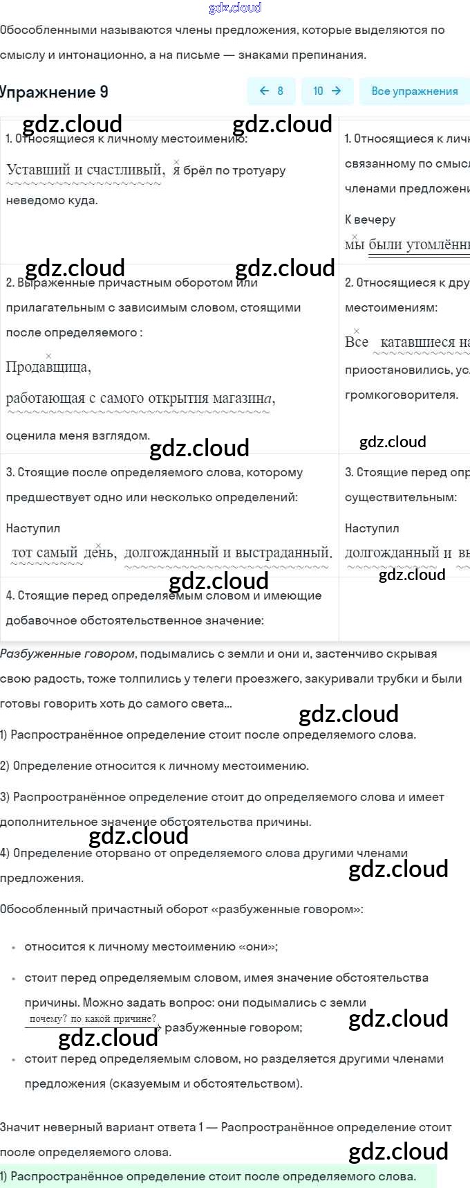 Ответ на задание 9 Тесты, творческие работы, проекты Русский язык за 8 (восьмой) класс Нарушевич, Голубева 2020