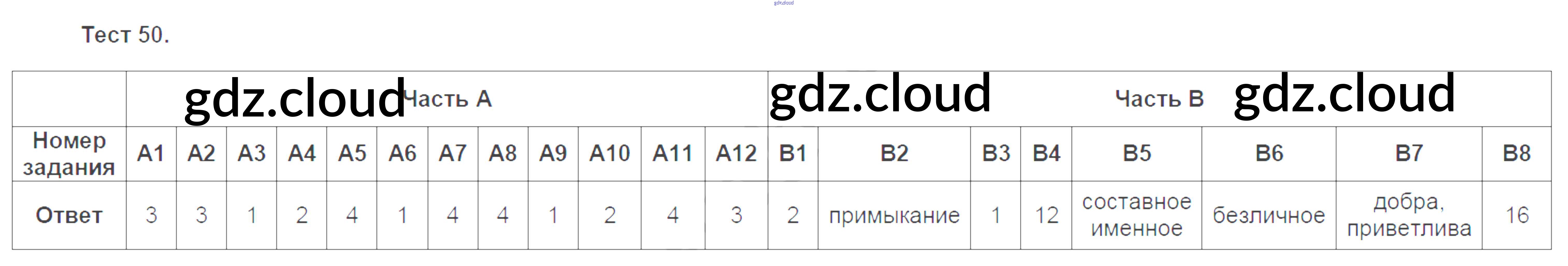 Ответ на задание №50 Тесты Русский язык за 8 (восьмой) класс Груздева УМК 2015 ФГОС онлайн и без номера телефона.