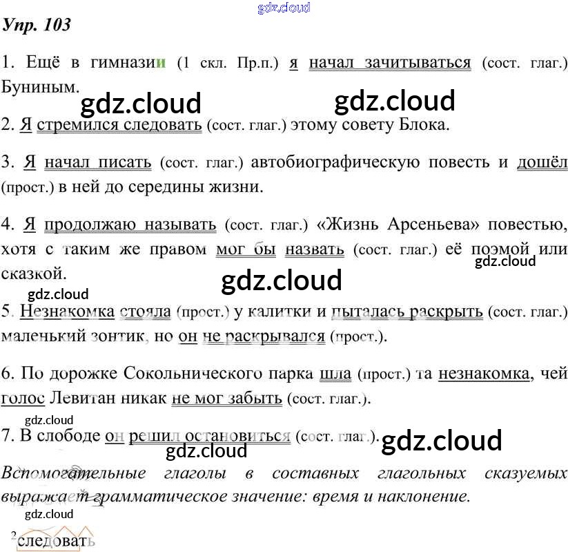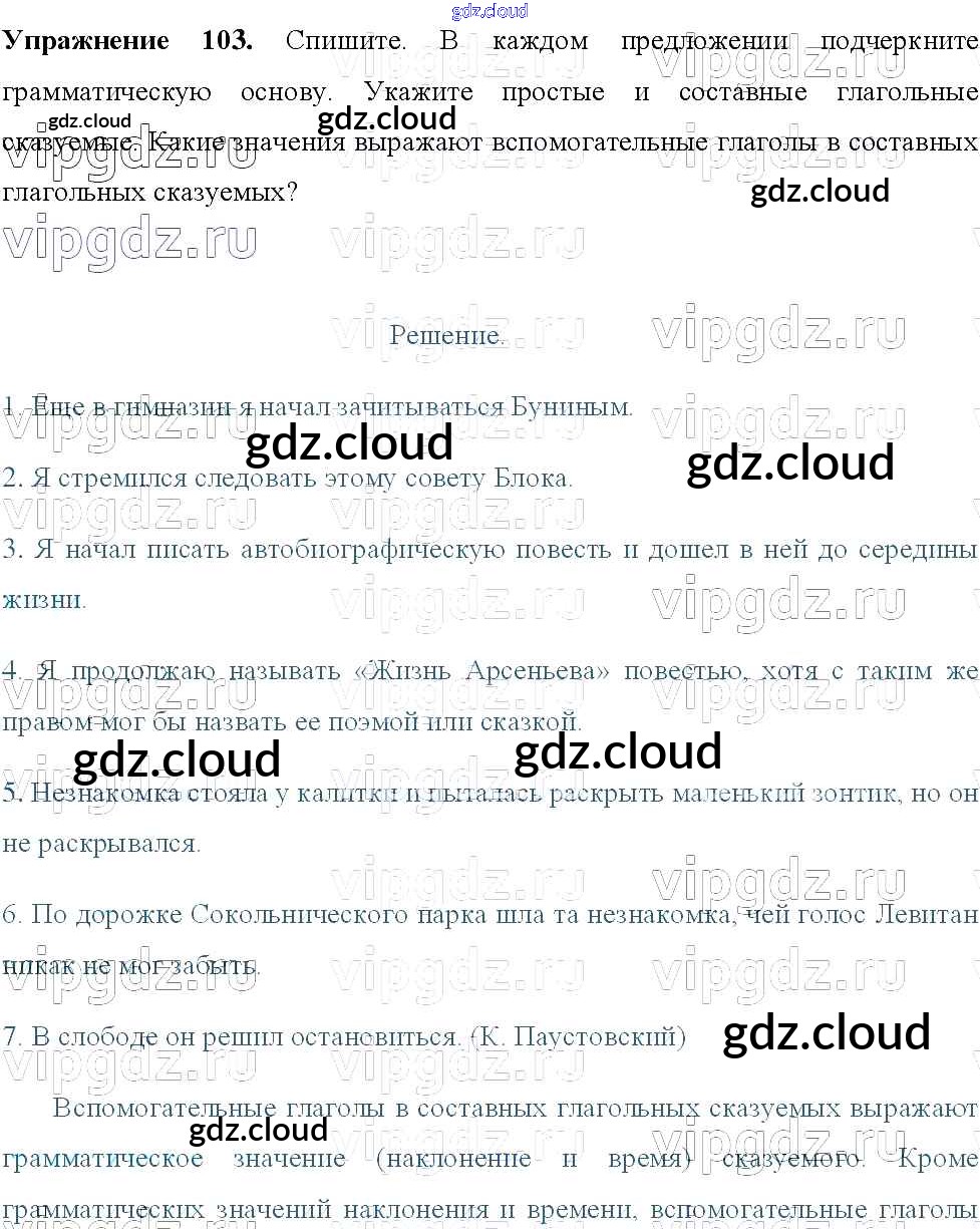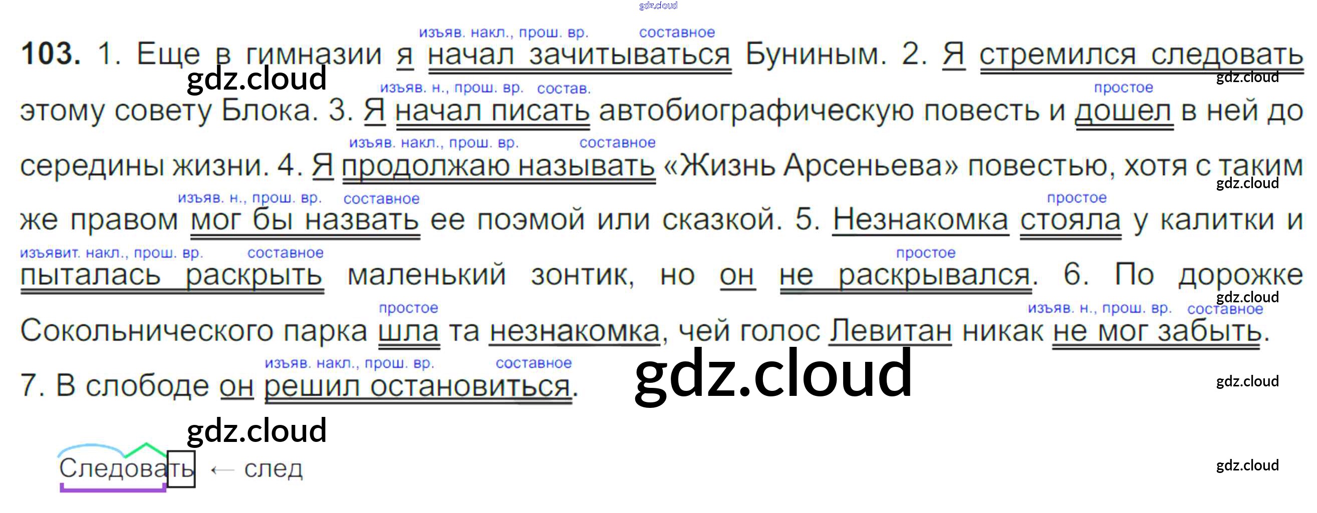 Ответ на задание 103 Учебник Русский язык за 8 (восьмой) класс Тростенцова, Ладыженская, Дейкина, Александрова 2014
