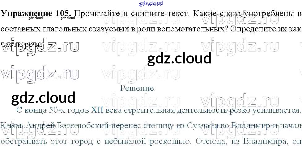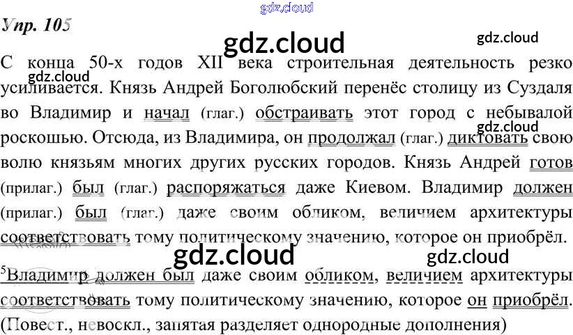 Ответ на задание 105 Учебник Русский язык за 8 (восьмой) класс Тростенцова, Ладыженская, Дейкина, Александрова 2014