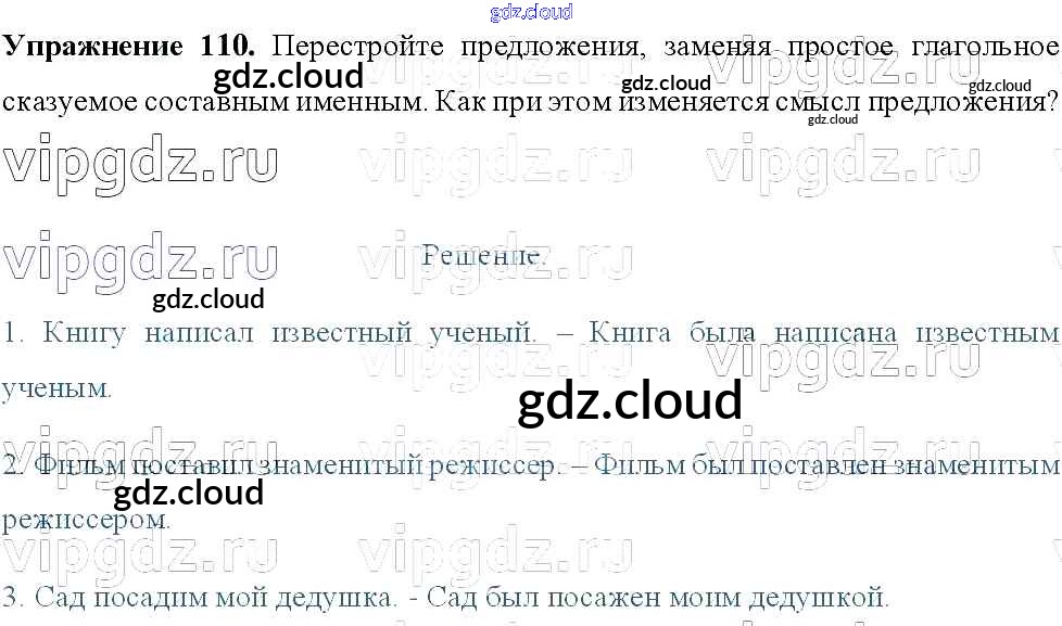 Ответ на задание 110 Учебник Русский язык за 8 (восьмой) класс Тростенцова, Ладыженская, Дейкина, Александрова 2014