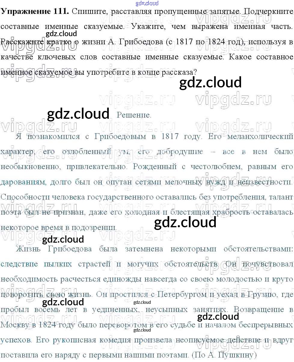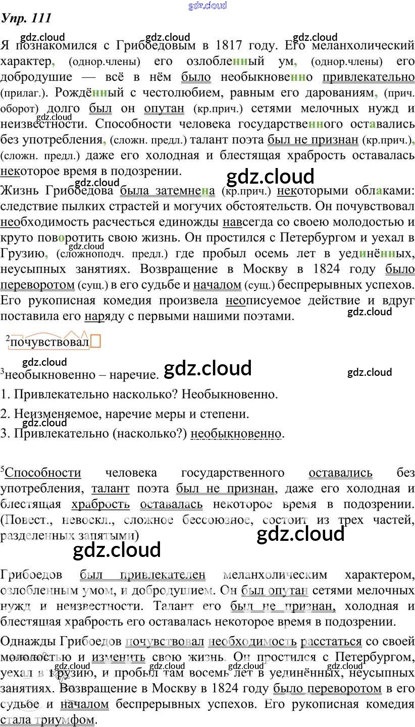 Ответ на задание 111 Учебник Русский язык за 8 (восьмой) класс Тростенцова, Ладыженская, Дейкина, Александрова 2014