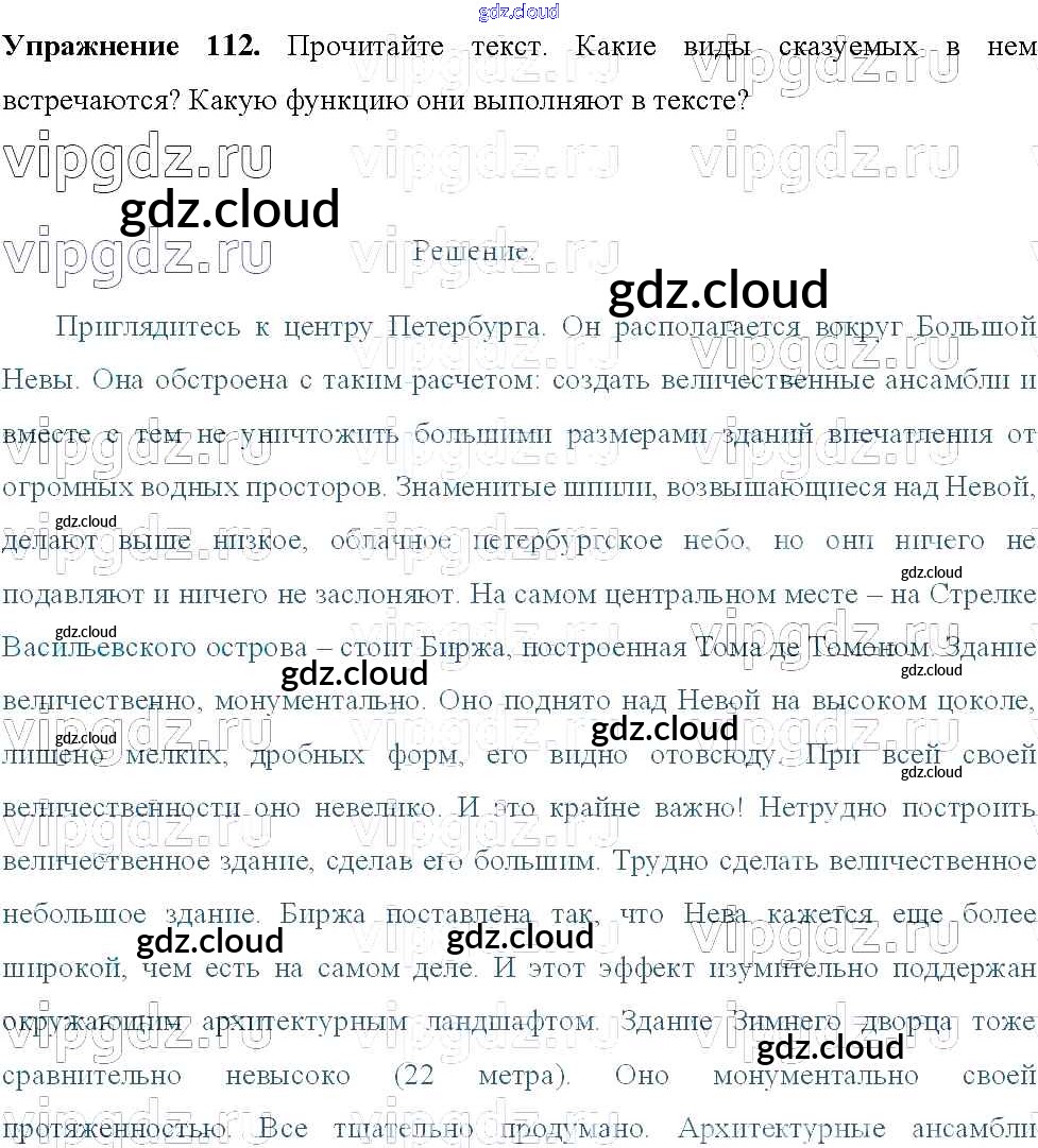 Ответ на задание 112 Учебник Русский язык за 8 (восьмой) класс Тростенцова, Ладыженская, Дейкина, Александрова 2014