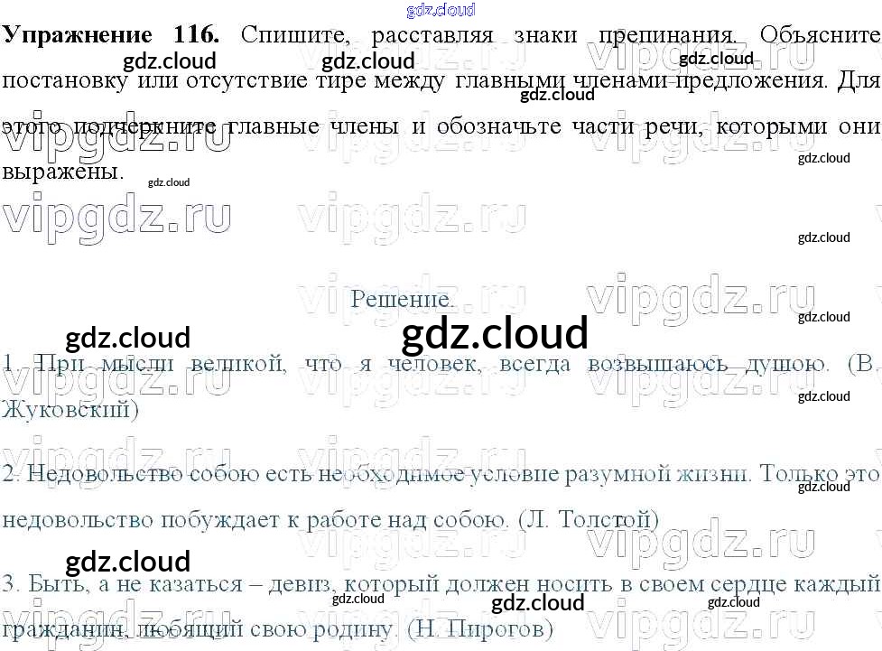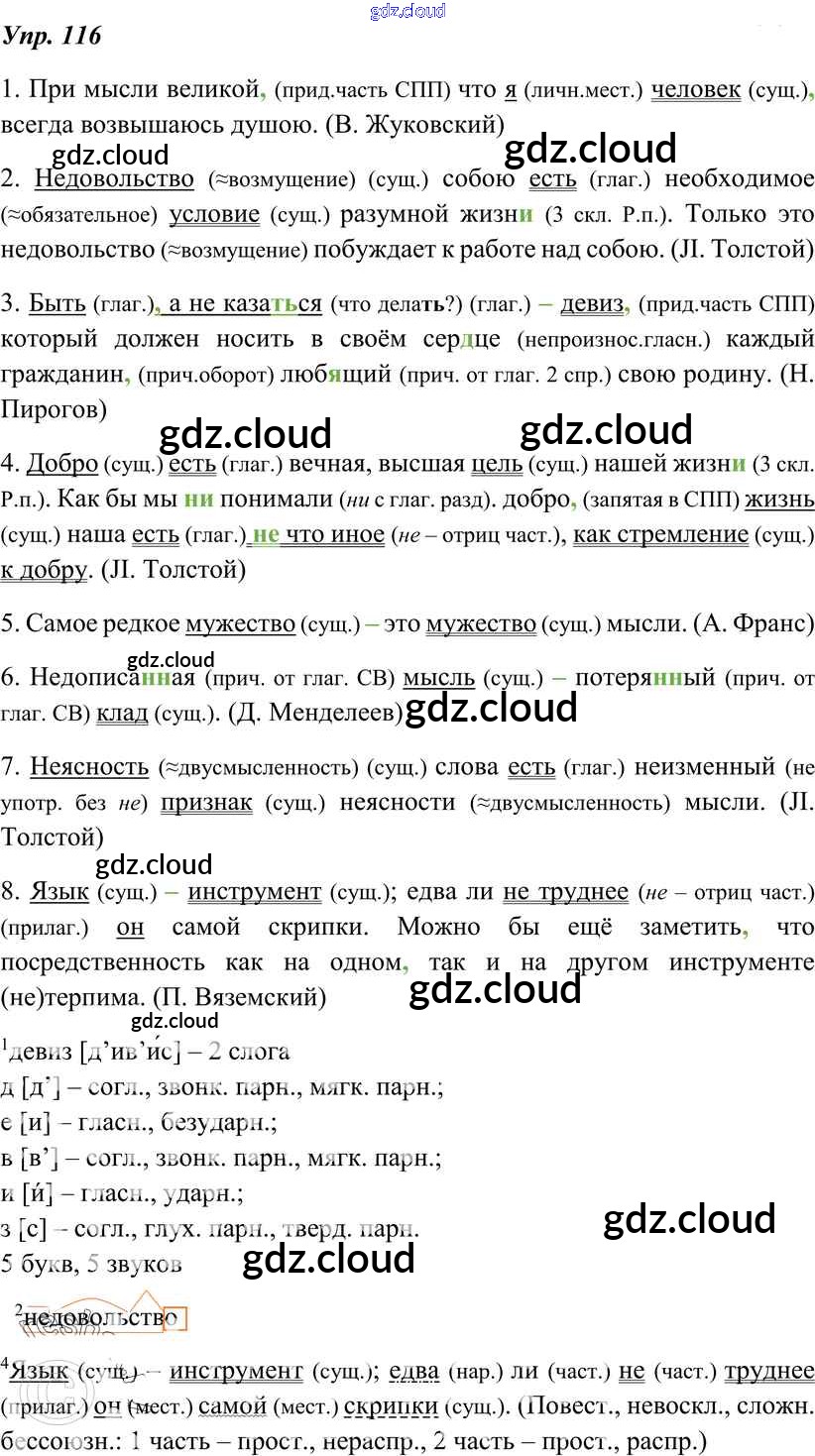 Ответ на задание 116 Учебник Русский язык за 8 (восьмой) класс Тростенцова, Ладыженская, Дейкина, Александрова 2014