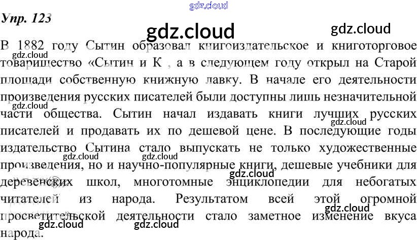 Ответ на задание 123 Учебник Русский язык за 8 (восьмой) класс Тростенцова, Ладыженская, Дейкина, Александрова 2014